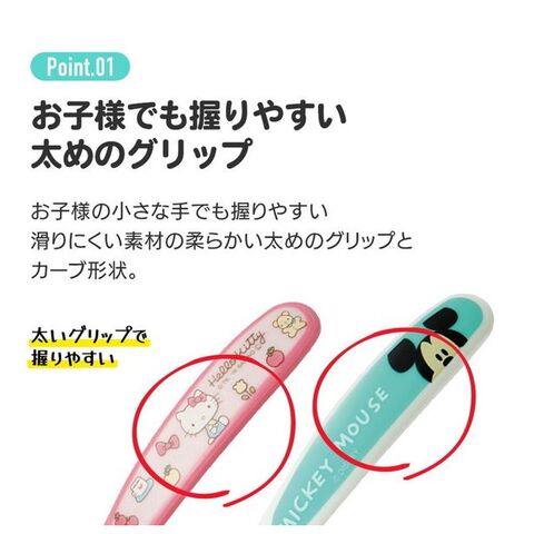 ・お子様の小さな手に握りやすい太めのグリップで、柔らかくて滑りにくい素材を使用しています。