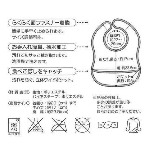 食べこぼしをしっかりキャッチする立体ワイドポケット付き。