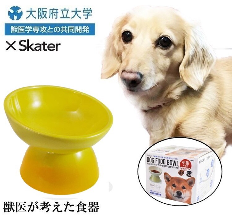 スケーター 小型犬用 食器 陶磁器製 ペット餌入れ マット付 イエロー CHOB2 ペット 犬 猫 食器 餌 ごはん 餌箱 エサ入れ お皿 優しい 体 負担 軽減