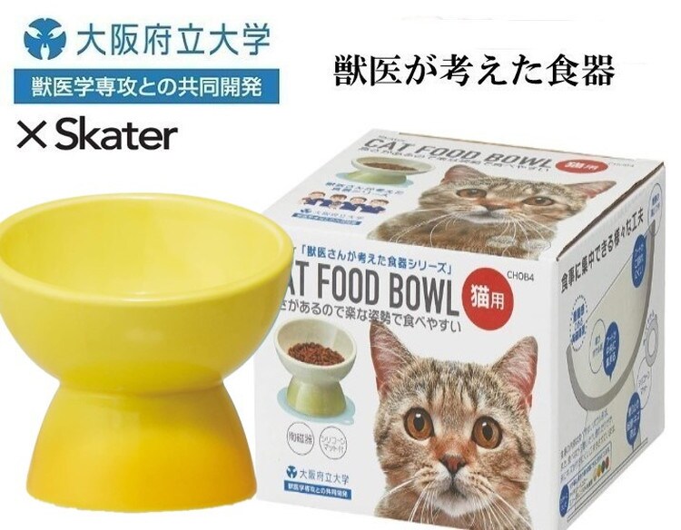 スケーター ネコ用 食器 陶磁器製 ペット餌入れ マット付 イエロー CHOB4 ペット 犬 猫 食器 餌 ごはん 餌箱 エサ入れ お皿 優しい 体 負担 軽減