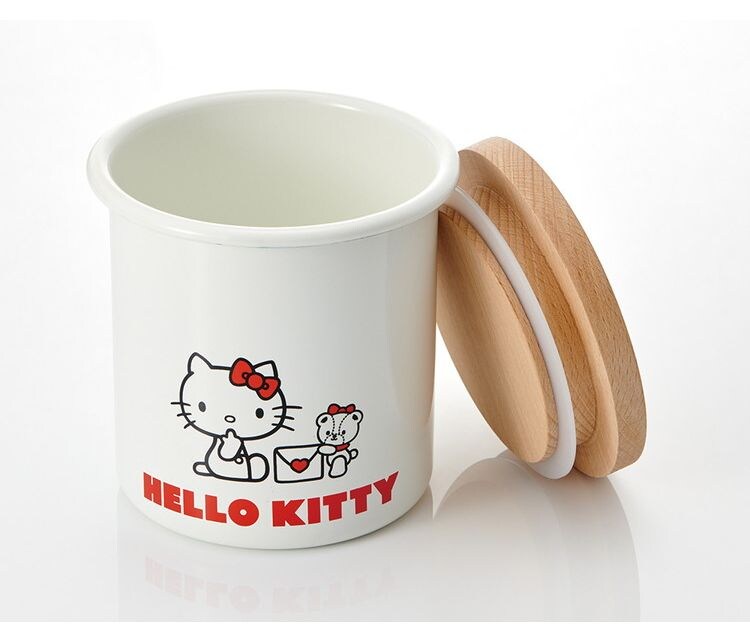 キャニスター 琺瑯 ホーロー 入れ物 ふた付き 蓋付き スケーター 木蓋 ハローキティ&タイニーチャム ENC8 保管 保存 容器 キャラ キャラクター キャラモノ サンリオ