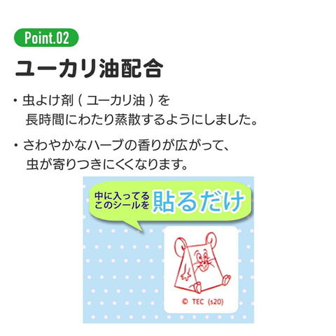 虫よけシールは虫よけ剤(ユーカリ油)を長時間にわたり蒸散するようにしました。