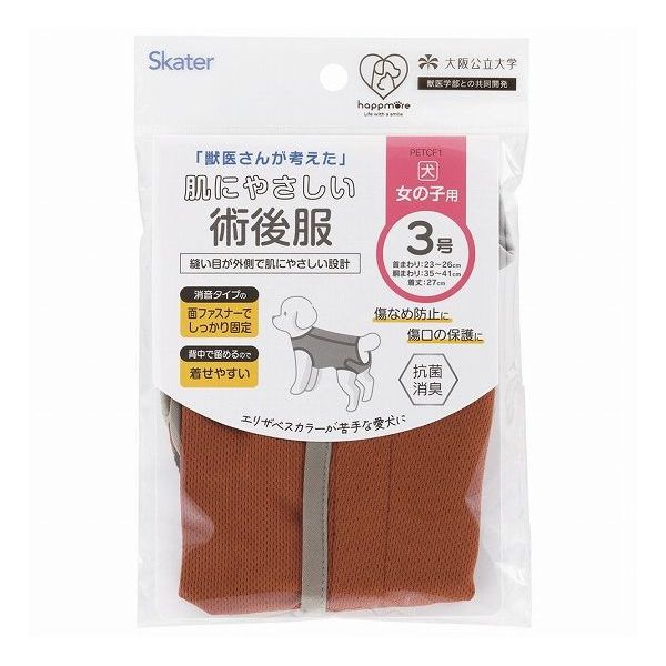 スケーター ペット用 犬 術後服 3号 女の子 傷口保護 ブラウン PETCF1 Skater