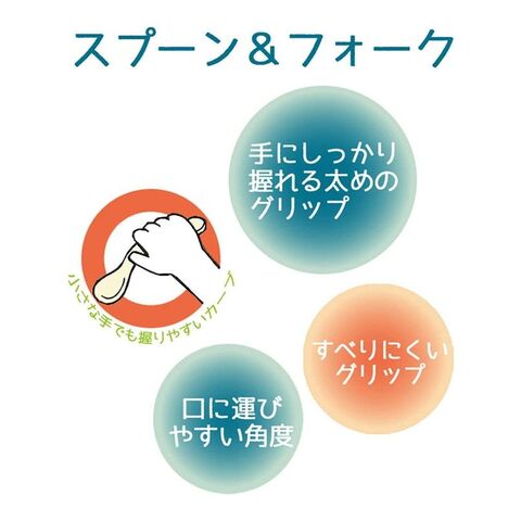 ・スプーンの先端が斜め形状のため、お子様が食べ物をを口に運びやすくなっています。