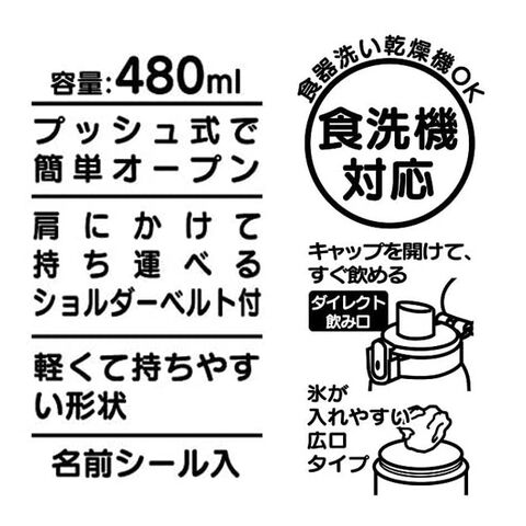 スケーター 銀イオン抗菌 食洗器対応 直飲み 水筒 プラボトル 480ml ファンターネ! PSB5SANAG キャラクター 可愛い かわいい プレゼント Skater