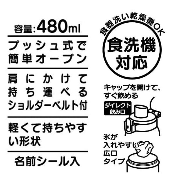 スケーター 銀イオン抗菌 食洗器対応 直飲み 水筒 プラボトル 480ml プラレール23 PSB5SANAG Skater