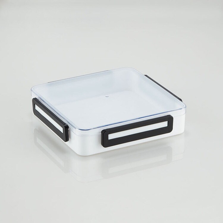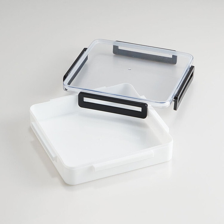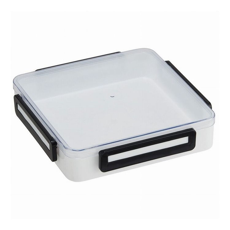 4ロックで密閉するパッキン付きフタ。