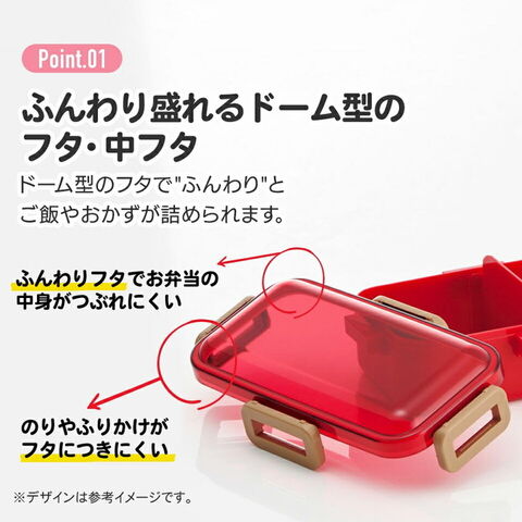 ドーム型のフタで、"ふんわり"とご飯やおかずが詰められる。