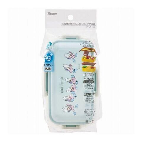 スケーター 銀イオン抗菌 2段 弁当箱 ふわっと盛れる 4点ロック 600ml ヤングオイスター PFLW4AG キャラクター かわいい 可愛い Skater