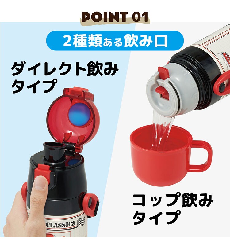 直接口を付けて飲めるダイレクト飲みタイプと、