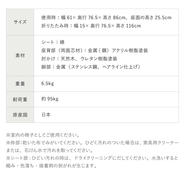 使用時:幅61×奥行76.5×高86cm、座面の高さ25.5cm