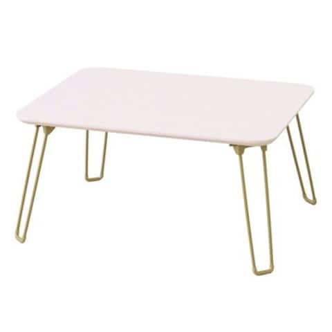 ●ニュアンスカラーの天板にゴールド調の脚が目を惹く折りたたみテーブル。