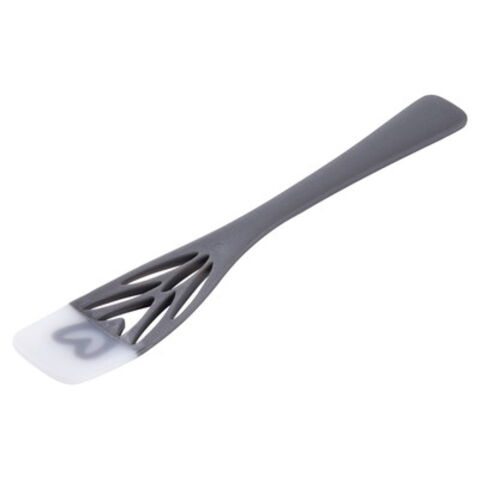●缶詰などの容器から、汁気と具材を分けながらすくうことができる穴あきスプーン。