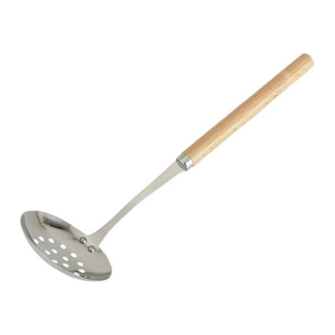 ●卓上のお鍋の取り分けに便利な、小さめサイズの木柄穴あきお玉です。