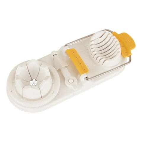 ●ゆでたまごの輪切り、花形切り、6等分のくし型切りがきれいにできる、1台3役のたまご切りです。