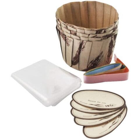 ●素材・材質:焼型/クラフト紙(ポリエチレン加工・耐熱温度200度)、ラッピング袋/ポリプロピレン(耐冷温度-30度)