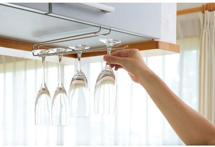 ●棚板に差し込んでワイングラスをオシャレに収納。