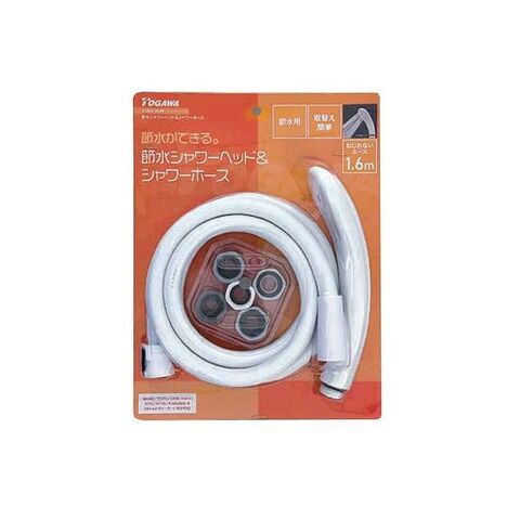 ●勢いそのままで節水ができる。●材質:【シャワーホース部】シャワーホース/塩化ビニル樹脂、混合栓継手/ABS樹脂・ポリアセタール・黄銅、シャワーヘッド接続継手/ABS樹脂・ポリアセタール・黄銅【シャワーヘッド部】シャワーヘッド/ABS樹脂、シャワー盤/ポリアセタール、パッキン/ニトリルゴム、ビス/ステンレス鋼【アダプター部】アダプター/ポリアセタール、パッキン/ニトリルゴム●最高使用温度:60℃●ホース 内径:11mm●使用水圧:0.05MPa(流動圧)~ 0.75MPa(静水圧)●継手ネジ部規格:G1/2(外径約21mm)●付属品:アダプター5種