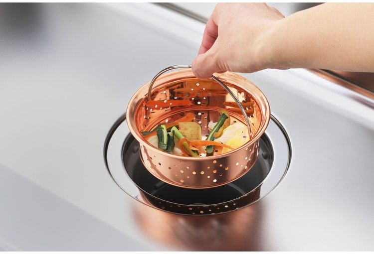 ●銅イオン効果で臭いやぬめりがつきにくい銅製ゴミ受け。