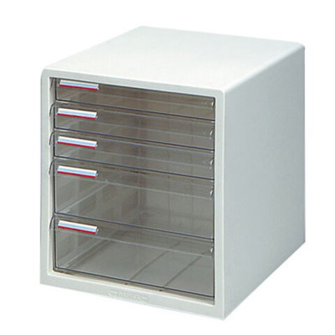●引出しは書類の整理に便利な浅型3段・深型2段があり、深型タイプはA4用紙も梱包ごと(500枚)収納でき、穴開けパンチや小型セロテープカッターなども入る高さです。
