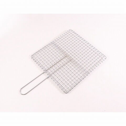●鉄製のしっかりとした作りにクロームメッキ加工を施した片手用の焼き網です。