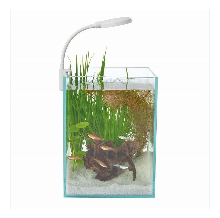 ●アクアリウムにもテラリウムにも。●フレームレス水槽(ガラス厚3・4・5mm)対応。●枠付き水槽(枠幅16mm以下)対応。●適応水槽:水槽幅25cm以下●防さびフレキシブルアーム。●本体カラー:ホワイト●定格電圧:AC100V 50/60Hz●定格消費電力:4W●個装寸法(mm):W110×D45×H110●明るさ:170ルーメン●付属品:ACアダプタ・USBケーブル・枠付き水槽アタッチメント