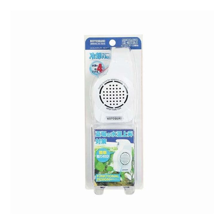 ●水槽の枠に取付け、送風する事により気化熱を利用し水温を下げます。●ファンの吸気口に抵抗なく、360度全方向から空気を取り入れることが可能な(機能的なデザイン)設計なので吸気ロスを減少し、気になる音も軽減します。●40cm(26L)以下の小型水槽用。●フレームレス・フレーム水槽対応。●寸法(mm):W90×D82×H245●水に濡らさないようにご注意ください。●気化熱により水温を下げるシステムですのでこまめに足し水を行ってください。●水槽の枠や渕にかけてご利用ください。