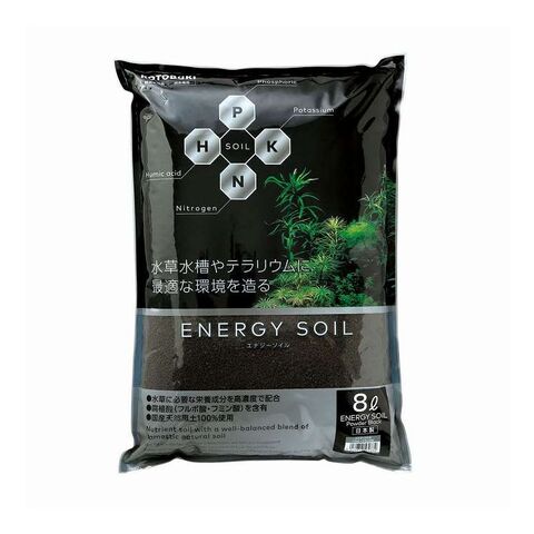 ●エナジーソイルは良質な国産天然黒土を原料に水草の成長に必要な窒素・カリウム成分やその他微量元素などを絶妙にブレンドした栄養系ソイルです。●保肥性にも非常に優れるため、長期間にわたり水草の根が栄養分を効率良く吸収します。●又、比重が大き目のソイルの為、水草の植え込みが容易に行なえます。●寸法(mm):W335×D90×H480●内容:8L●本製品は水洗いしないでください。粒が崩れて濁りの原因となります●ソイルの性質上セット初期(1~2週間)は、水槽内にコケが発生しやすくなります。予防のポイントとして水槽内に出来るだけ多くの水草を植え光合成が出来る環境を整える事や、水替えを2~3日おきに行う事でコケを抑制する事が出来ます。