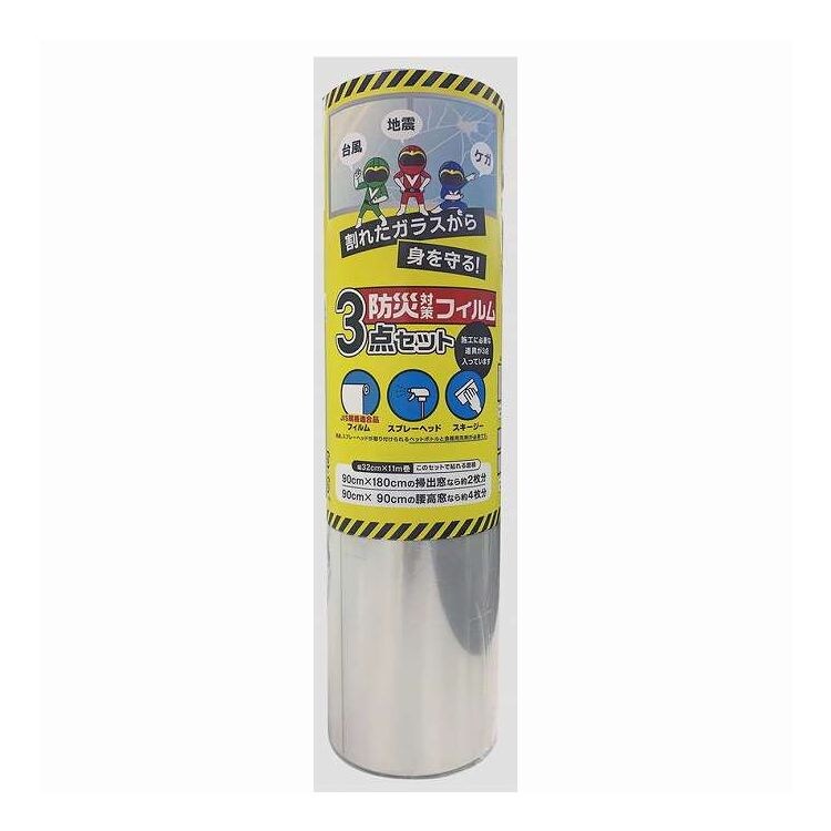 ●防災フィルムと施工道具のセット。