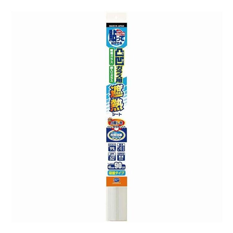 ●凹凸ガラスにも貼れる遮熱フィルムです。●日射をカットし冷房効率アップします。●紫外線を99%カットします。●糊不使用なので、使用後キレイにはがせます。●網入りガラスや複層ガラス対応です。●商品サイズ(約):460×900mm●素材:PET●1.ガラスのサイズを測る 2.ガラスの掃除をする 3.フィルムをガラスに貼る