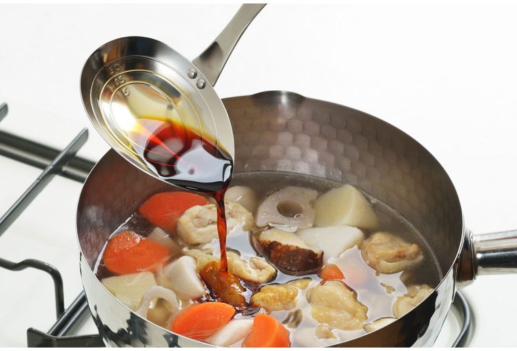 ●小ぶりな器や繊細なお料理でもそっとこぼさずに注げる横口お玉です。●5ml、15ml、30mlのラインが入っているので、調味料の計量や取り分けなどに便利です。●商品サイズ(約):縦/250mm、横/105mm●商品重量(約):95g●パッケージ重量(約):100g●材質:18-8ステンレス