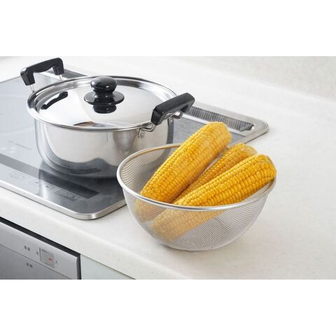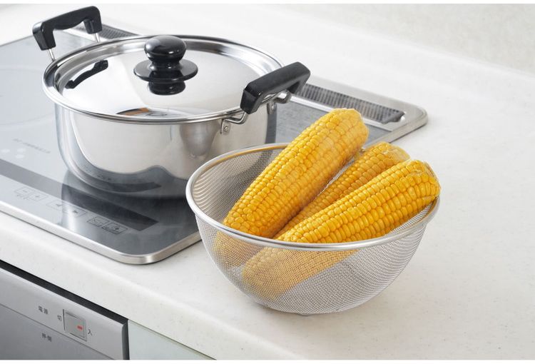 ●丈夫なメッシュアミで壊れにくく、お手入れもしやすいステンレスザル。