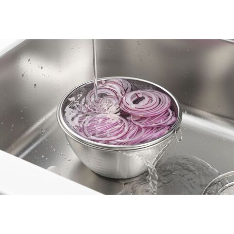 ●丈夫でサビにくいステンレスボウル。●深型なので、中の食材が飛び散りにくく、周りを汚しにくいです。●同シリーズのザルやストレーナーと合わせて、水切りはもちろん、食材を水にさらしたり、アサリの砂出しといった下ごしらえなど便利に使えます。●ニオイや色移りしにくいので、お手入れもしやすいです。●便利な目安目盛り付きです。●商品サイズ(約):縦/197mm、横/97mm●商品重量(約):184g●材質:18-8ステンレス