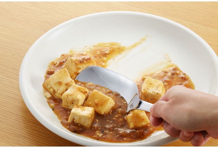 ●側面を薄く仕上げているので、ソースやタレまでキレイにすくえます。●チャーハンなどの細かいパラパラした料理や崩したくない麻婆豆腐などの取り分けに便利です。●商品サイズ(約):縦/214mm、横/6mm、高さ/36mm●商品重量(約):80g●材質:ステンレス
