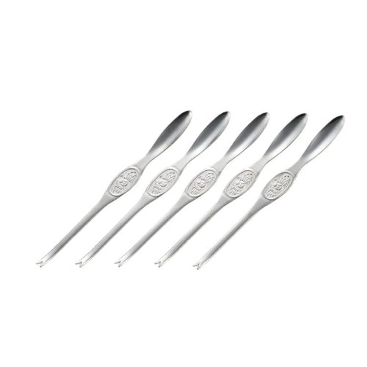 ●身が取りやすく、きれいに食べられるカニフォークです。●スプーン形状の持ち手で、カニみそもすくえます。●5本組です。●商品サイズ(約):縦/153mm、横/13mm、高さ/6mm●商品重量(約):12g●材質:ステンレス