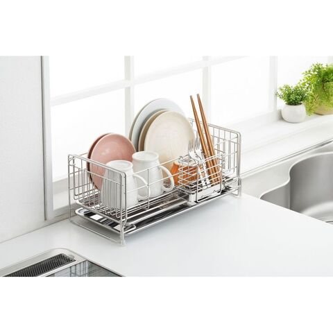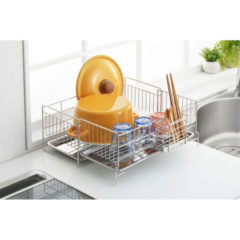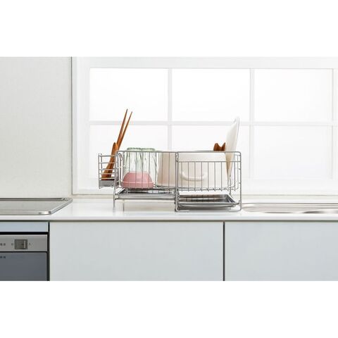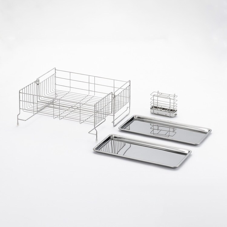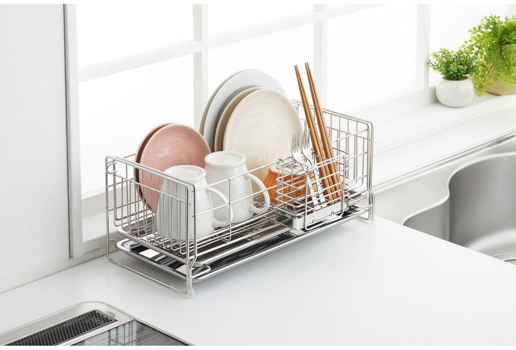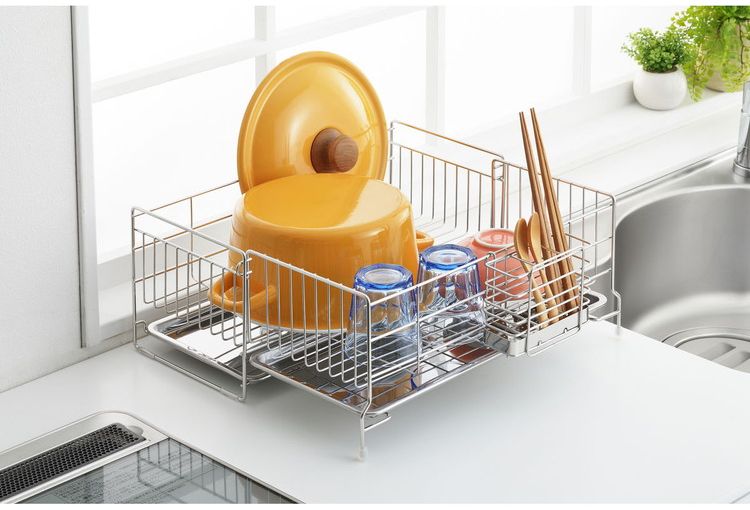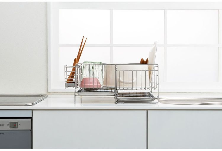 ●伸縮式なので洗い物の量に合わせて使えます。●2枚のトレーなので、伸ばした時もしっかり水滴をキャッチします。●便利な箸立て付きです。●商品サイズ(約):縦/395mm、横/185mm、高さ/167mm●パッケージサイズ(約):幅/413mm、奥行/212mm、高さ/185mm●商品重量(約):1522g●パッケージ重量(約):1800g●材質:水切りバスケット・箸立て/18-8ステンレス、トレイ/ステンレス、クッション/シリコンチューブ