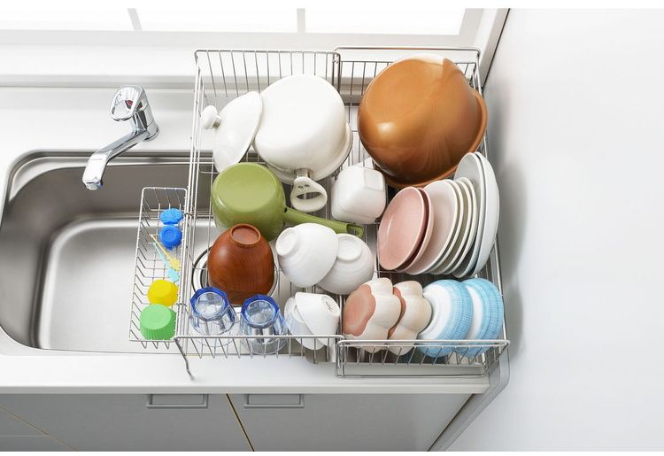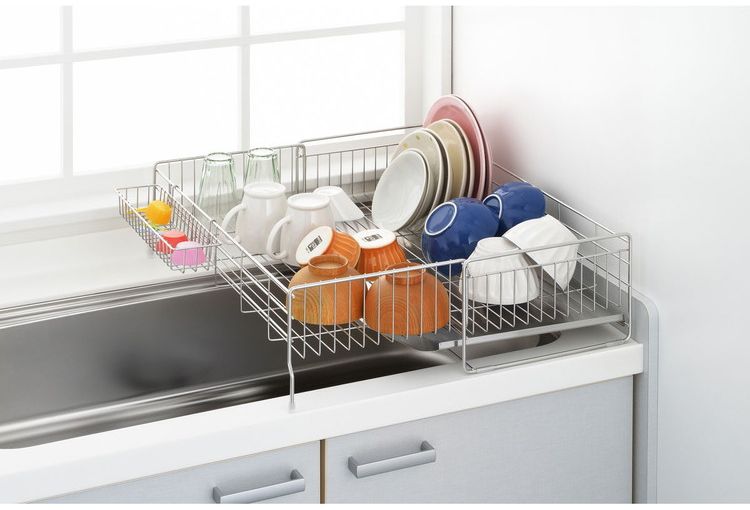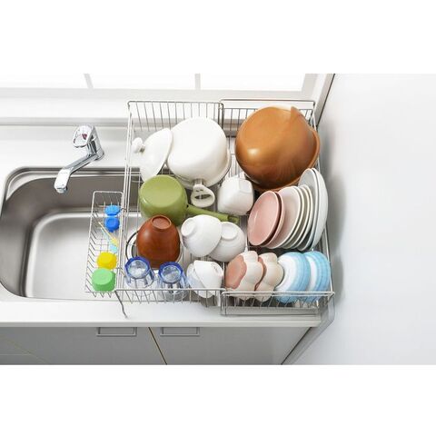 ●シンクサイドのわずかなスペースに設置できる水切り。