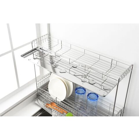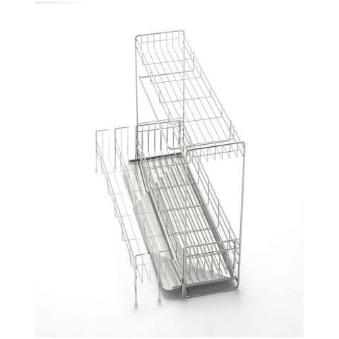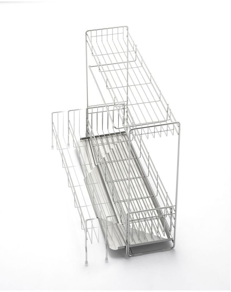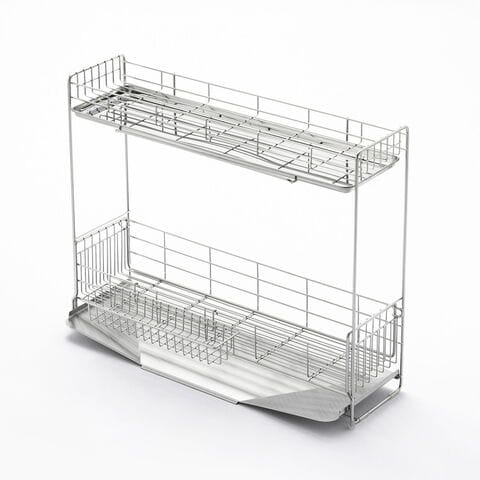 ●下段は伸縮するので大容量にも対応しています。●上段もトレー付きなので水が下に落ちず、下段は斜めトレーでシンクに直接流れていきます。●便利な小物ポケット付きです。●商品サイズ(約):縦/150mm、横/570mm、高さ/450mm●パッケージサイズ(約):幅/600mm、奥行/210mm、高さ/517mm●商品重量(約):1900g●パッケージ重量(約):3300g●材質:水切りバスケット(A・B)・小物ポケット/18-8ステンレス、脚ゴム・クッションチューブ/シリコーンゴム、斜めトレイ・トレイ/18-0ステンレス