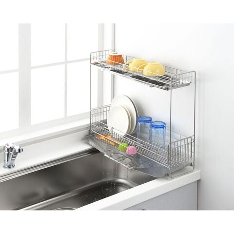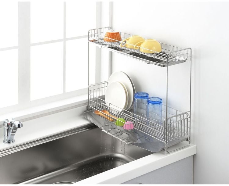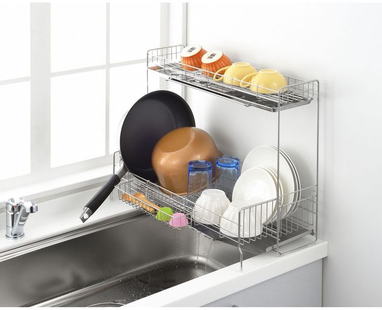 ●シンクサイドのわずかなスペースに設置できる2段水切り。