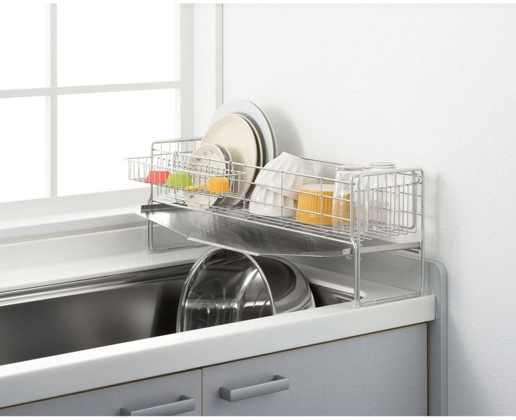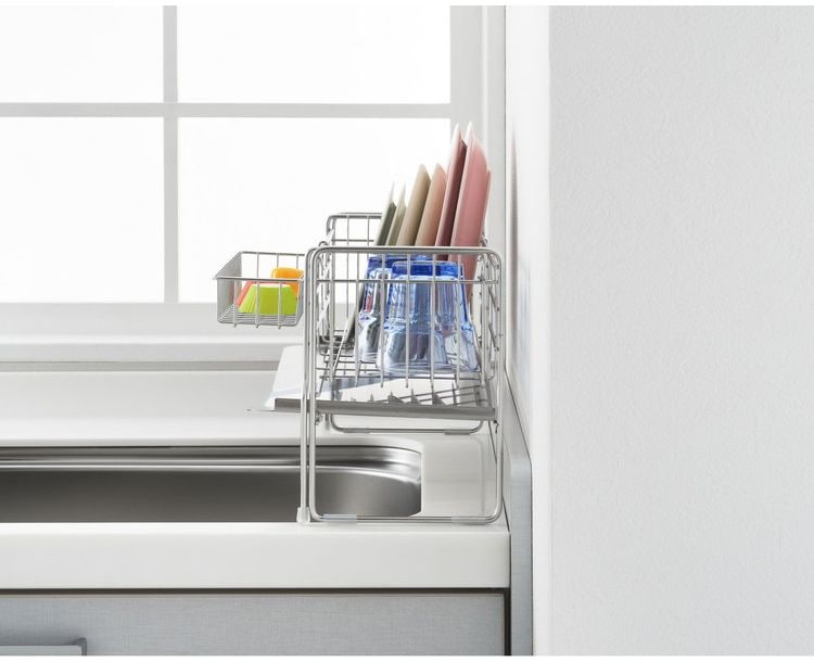 ●シンクサイドのわずかなスペースに設置できる水切り。