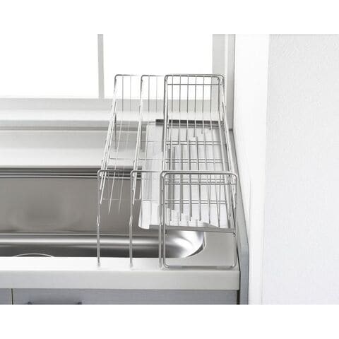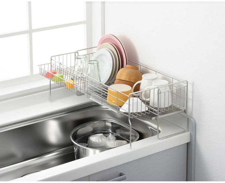 ●スライド式なので、洗い物の量に応じて便利に使えます。●斜めトレーなので、水が溜まらず衛生的で手間もかかりません。●取り外して洗えるので、お手入れも簡単です。●ハイタイプなので、シンク内を広々使え、洗い桶も邪魔になりにくいです。●水切り下のお手入れもしやすく、衛生的に使えます。●便利な小物ポケット付きです。●商品サイズ(約):縦/150~275mm、横/570mm、高さ/208mm●パッケージサイズ(約):幅/595mm、奥行/220mm、高さ/255mm●商品重量(約):1480g●パッケージ重量(約):2200g●材質:水切りバスケット(A・B)・小物ポケット/18-8ステンレス、脚ゴム・クッションチューブ/シリコーンゴム、斜めトレー/ステンレス
