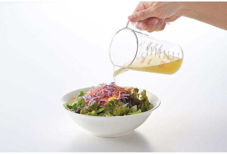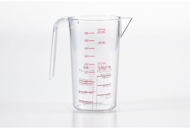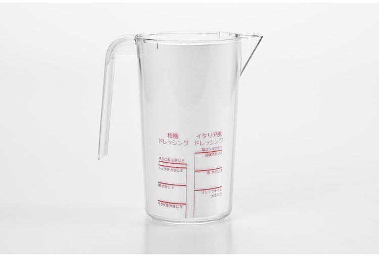 ●400mlまでの計量線と、和風・イタリア風ドレッシングの分量レシピ付きです。●小麦粉や砂糖などの計量にも便利です。●商品サイズ(約):縦/128mm、横/85mm、高さ/143mm●パッケージサイズ(約):幅/128mm、奥行/86mm、高さ/144mm●商品重量(約):100g●パッケージ重量(約):105g●材質:AS樹脂(-20~80度)