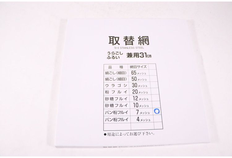 ●メッシュとは、【例】20メッシュ(荒目)の場合、1インチ(2.54cm)角に縦20・横20の目があります。●材質:18-8ステンレス