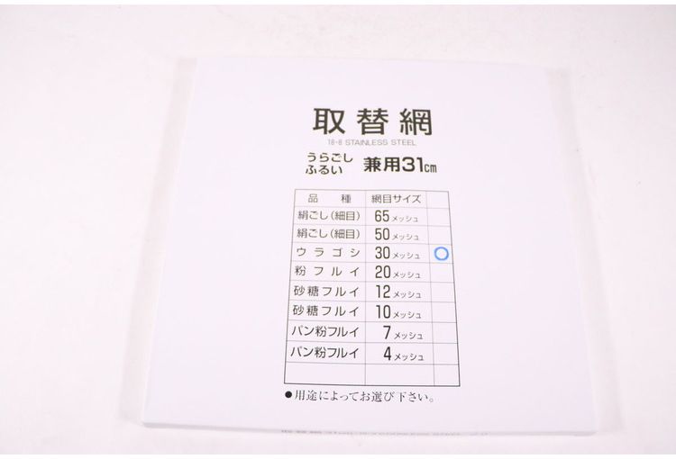 ●メッシュとは、【例】20メッシュ(荒目)の場合、1インチ(2.54cm)角に縦20・横20の目があります。●材質:18-8ステンレス