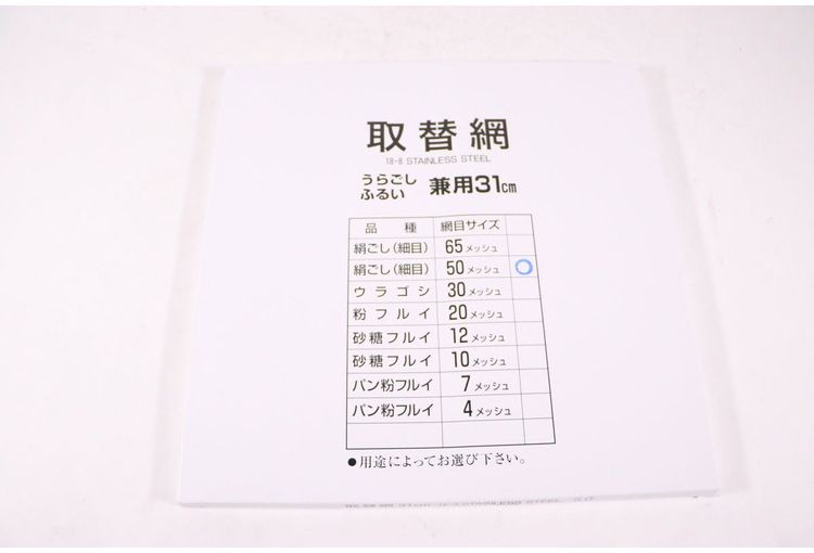 ●メッシュとは、【例】20メッシュ(荒目)の場合、1インチ(2.54cm)角に縦20・横20の目があります。●材質:18-8ステンレス