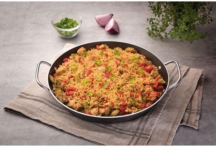 ●Loretoのパエリア鍋。●食洗機対応。●商品サイズ(約):直径380mm、450×385×75mm●商品重量(約):1000g●材質:メタリックグラファイトハンドル