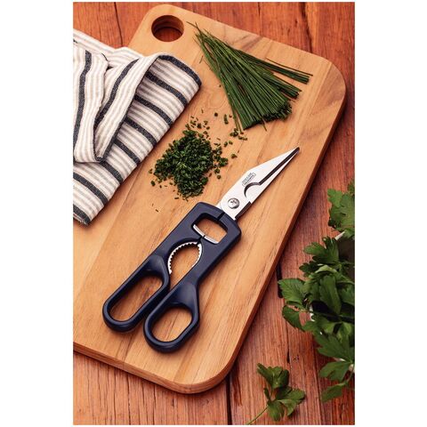●ご家庭内はもちろん、アウトドアにも活躍出来るデザイン、機能が特徴。●ハサミの刃部位はステンレス製、ハンドル部分はポリプロピレン仕様の高耐久、分解可能かつ食器洗浄機対応と、機能性に優れた万能バサミです。●肉切り、栓抜きやくるみ割りなど一本でマルチにご使用いただけます。●商品サイズ(約):224×70×13mm●商品重量(約):105g●材質:ステンレス、ポリプロピレン