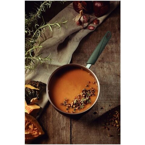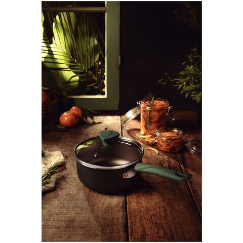 ●風や葉などの自然の要素に基づいたコンセプトにより、流れるようなフォルムをデザインしています。●鍋、フライパン:100%リサイクル樹脂材使用。●内外面スターフロンノンスティックコーティングのアルミニウム製。●強化ガラスの蓋、蒸気穴とステンレスのリム付きにナイロン製ノブ仕様。●商品サイズ(約):径19.4mm、全長351mm、高さ14mm、厚さ1.8mm●商品重量(約):760g●容量:2.1L●材質:アルミ、フッ素樹脂、エンジニアリングプラスチック