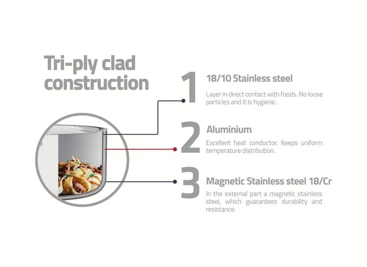 ●熱伝導に優れたアルミを耐久性に優れた18-10ステンレスと電磁調理器対応ステンレスで挟んだ三層構造鍋。●底面だけでなく全面三層のため料理をムラなく均一に調理いただけます。●大変しっかりとした作りとなっておりますため次の世代へも引き継げる、長年に渡りご利用いただける鍋です。●商品サイズ(約):337×250×145mm●商品重量(約):1937g●材質:18-10ステンレス、アルミ