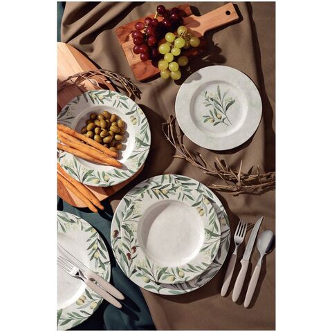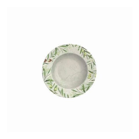 ●半透明の白さと光沢が際立つ、特徴的なオリーブ柄デザイン。●食洗機対応。●電子レンジ対応。●商品サイズ(約):径230mm、高さ33mm●商品重量(約):445g●材質:磁器